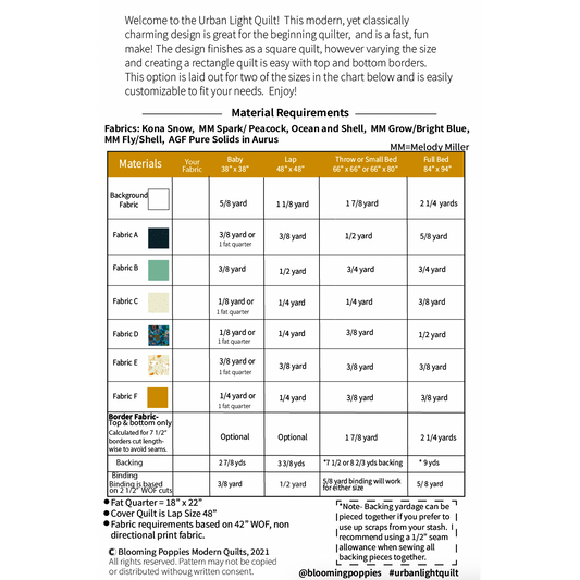 Urban Light Quilt Pattern Booklet