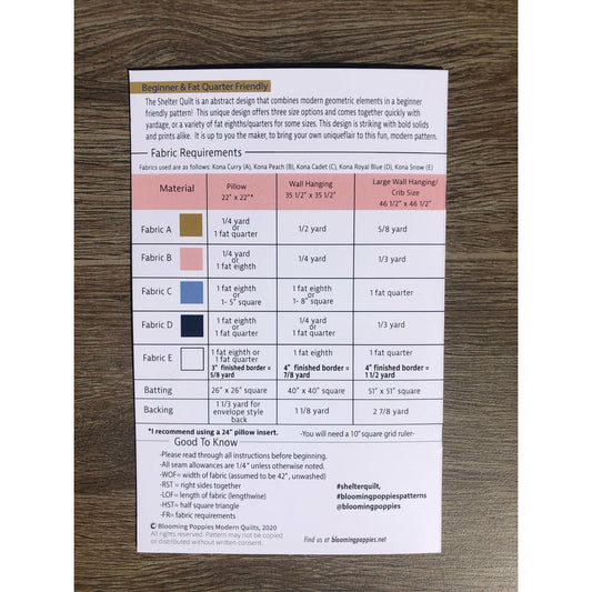 Shelter Quilt Paper Pattern Booklets