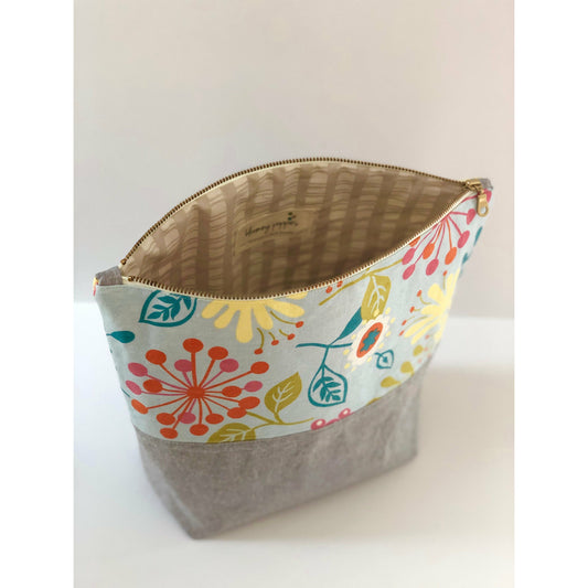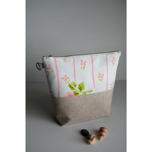 Project Bag, Knitting Bag, Medium Size Vintage and Linen, Spring Inspired Bag with YKK Metal Zipper- THE LORETTA