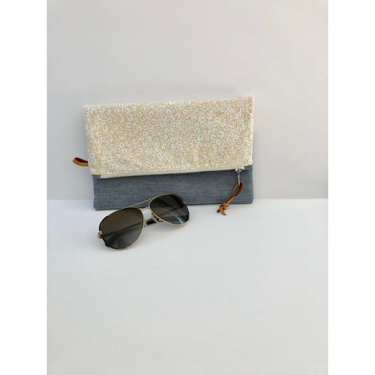 Handmade Modern Foldover Clutch Purse- The Amelia, with Leather Trim and Designer Fabrics